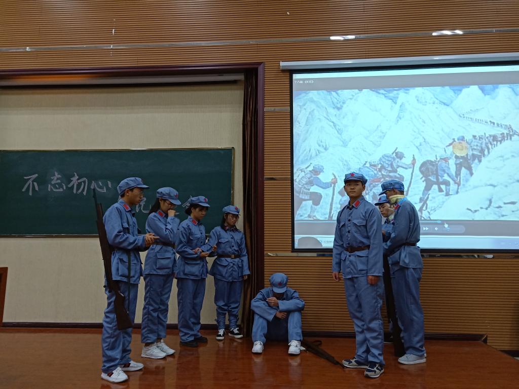 活动在《七子之歌》的演唱声中拉开了序幕;惟妙惟肖的配音表演和绘声绘色的小品让大家开怀大笑,赞不绝口;感人的《心中的国旗》让我们看到一个小女孩儿心中浓烈的爱国热情;向先辈致敬的《长征》和缅怀先烈的《红岩选段》重现革命先辈的伟大形象;荡气回肠的诗朗诵《速度》和抑扬顿挫的歌曲《大中国》,让大家享受了一场视听盛宴。 在演员们的倾情演绎下,我们体会到了亘古不变的爱国情、感受到那马革裹尸的热血。精彩的表演激起观众心中一阵阵涟漪,赢得了一次又一次热烈的掌声。最后,第五组同学凭借其小品《扶贫村的除夕夜》荣获“最佳表演小组”的称号。活动接近尾声,三位老师分别对本次活动给予了充分的肯定并提出了宝贵的意见和建议,珍惜每一次上台展示自己的机会,力争最好的表现。
