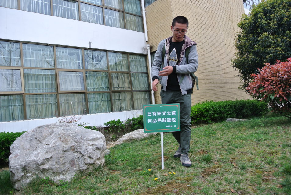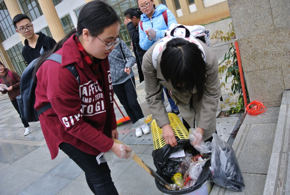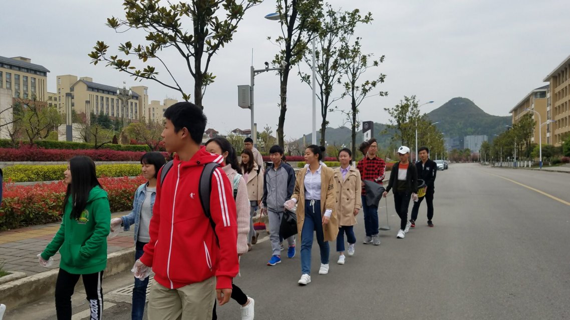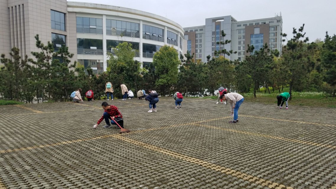 学生会分团委副书记罗棋介绍此次活动的内容及其目的,并将学生会成员按部门分为4个小队,携带清除工具,在各自负责的区域里一丝不苟地清理垃圾;同时,宣传部成员把制作好的绿化提示牌安置于合适的位置,引人深思的温馨提示,让每一位同学在行走的过程中不断加强“保护绿化,爱护环境”的意识。历经两个小时的认真清扫,以喷泉广场为中心的周围绿化带有了全新的面貌。