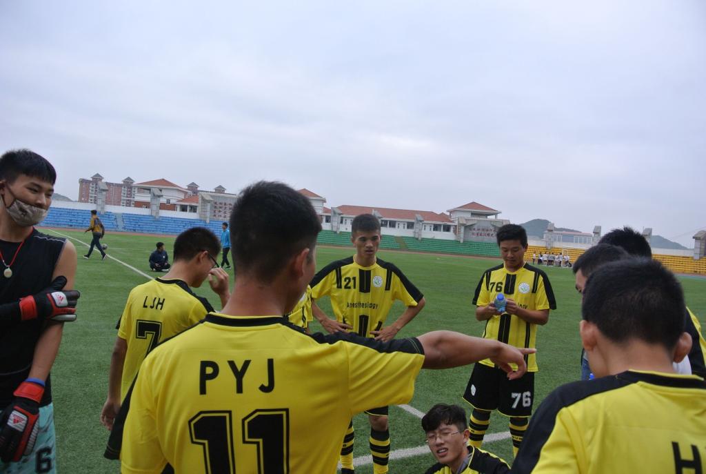 比赛伊始,双方队员有序入场,友好拍手,哨响,比赛拉开序幕,虽是新手,却带来了激动人心的赛况,你追我赶,尽显“贵之冠,医之巅,足之智,球之勇”。球员们矫健的身姿,挥汗如雨的身影,跌倒再起不皱眉。此次比赛秉承友谊第一,比赛第二的精神队员们胜不骄,败不馁,最终以平局圆满落幕。