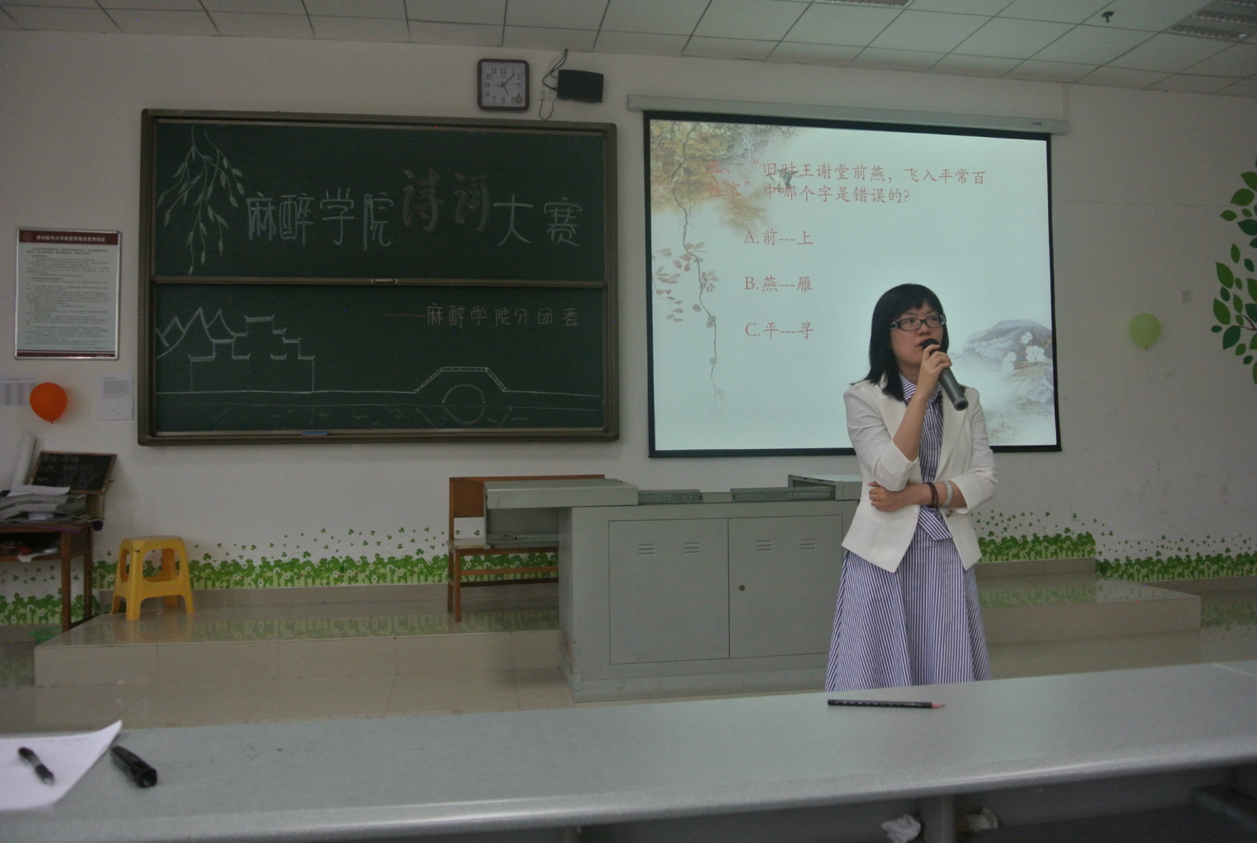 为深入贯彻落实习近平系列讲话精神,结合我校大学生思想政治教育工作实际,根据我校“立德树人·书香校园·博雅青年”系列活动要求。5月11日,麻醉学院于南校区4402教室组织进行了“寻中华传统文化,品中华诗词之美”诗词大赛;出席活动的老师有口腔医RYSPORTS