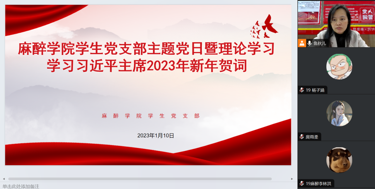 2023年1月10日,学生党支部以腾讯会议的方式开展“行则将至做则必成——品读习近平主席二〇二三年新年贺词”主题党日暨理论学习活动。