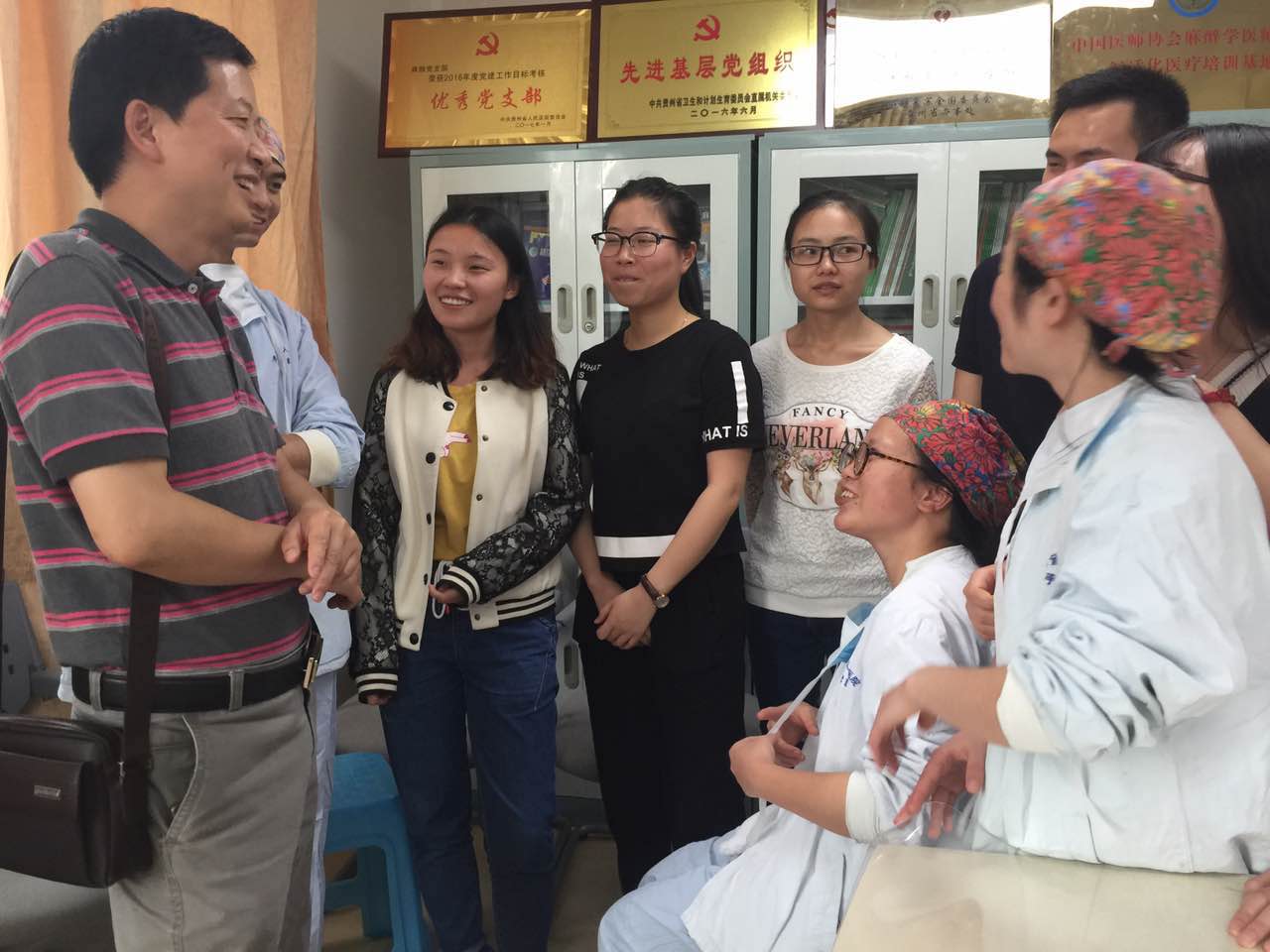 2013级学生的实习情况,院党委书记刘建华麻醉学基础教研室主任曾祥刚,教学科研管理科副科长文钰纾,辅导员徐青于6月21日分别到贵州医科大学附属医院和贵州省人民医院教学医院,检查毕业实习的临床教学情况。