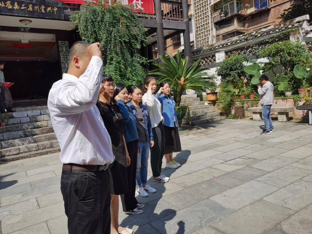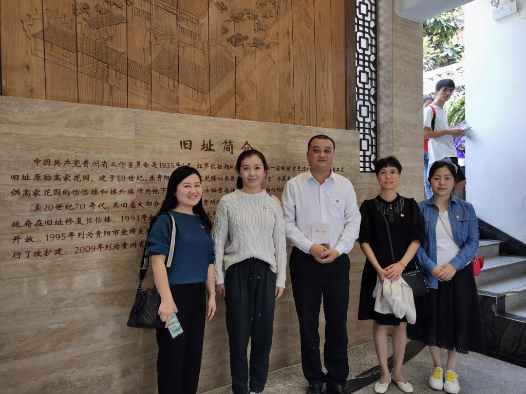 党委赴中共贵州省工委旧址开展“不忘初心、牢记使命”主题党日活动。党委书记李宏伟、副书记黄兰与教职工党支部、研究生党支部、学生党支部全体党员一同参观学习。