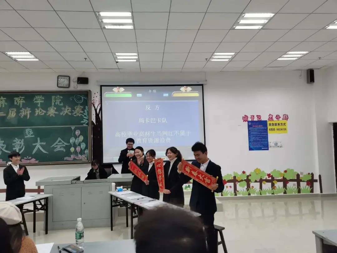 此次决赛由我方说的都队与玛卡巴卡队对“高校毕业高材生当网红属不属于教育资源浪费”辩题进行激烈的辩论。双方就己方观点,在立论、质询、小结、自由辩、总结陈词等环节展开了激烈的交锋,酣畅淋漓。