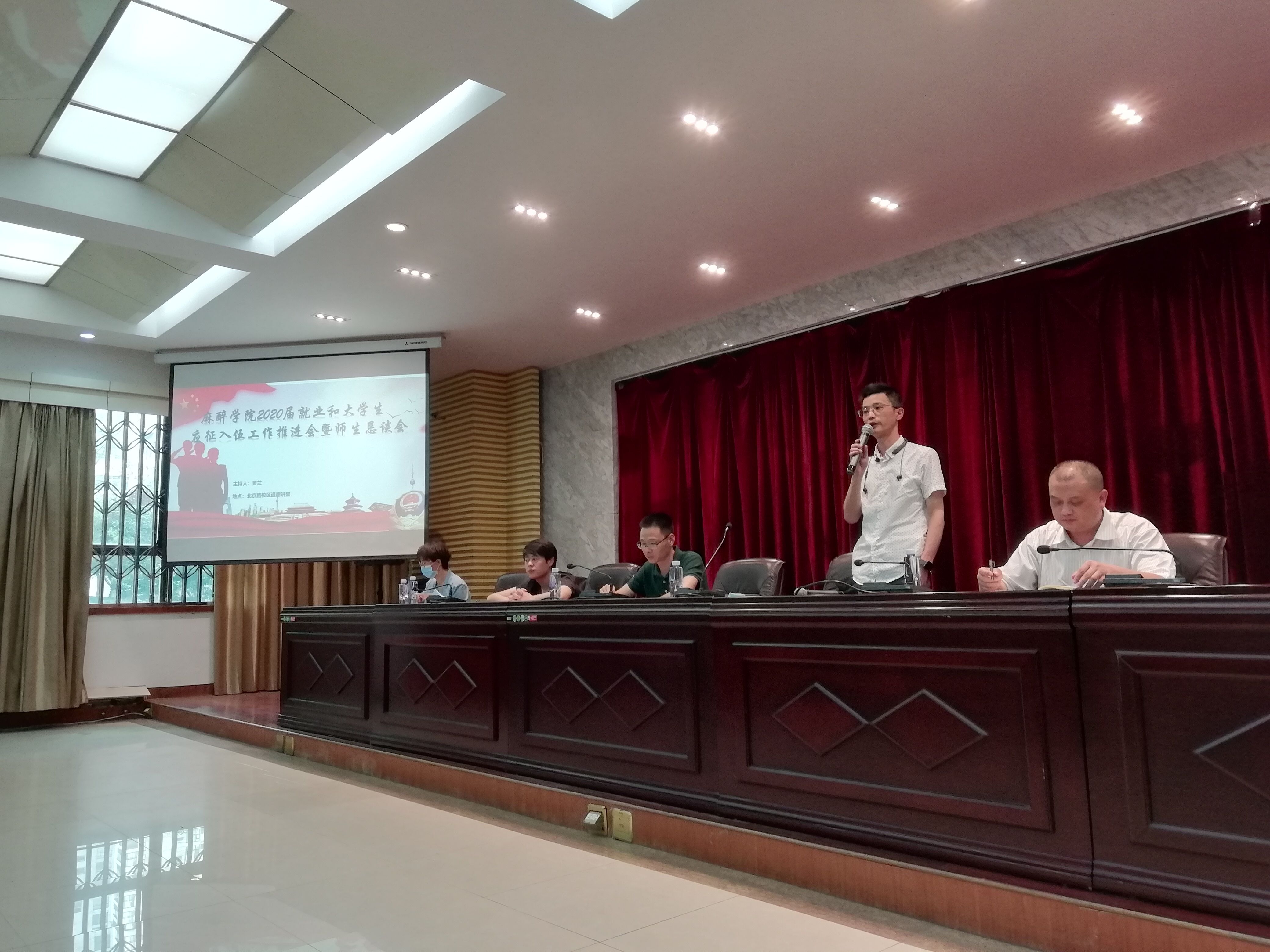 同心协力,共克时艰。如意体育 师生近百人于5月19日下午在北京路校区道德讲堂召开了2020届毕业生师生恳谈会暨就业和征兵工作推进会。院党委书记李宏伟、副院长邹小华(主持工作)、党委副书记黄兰、毕业班辅导员及全体同学参会。校招生就业处副处长李季、就业办韩康老师、学生处(学工部、武装部)吕韬老师应邀出席。会议由RYSPORTS 党委副书记黄兰主持。