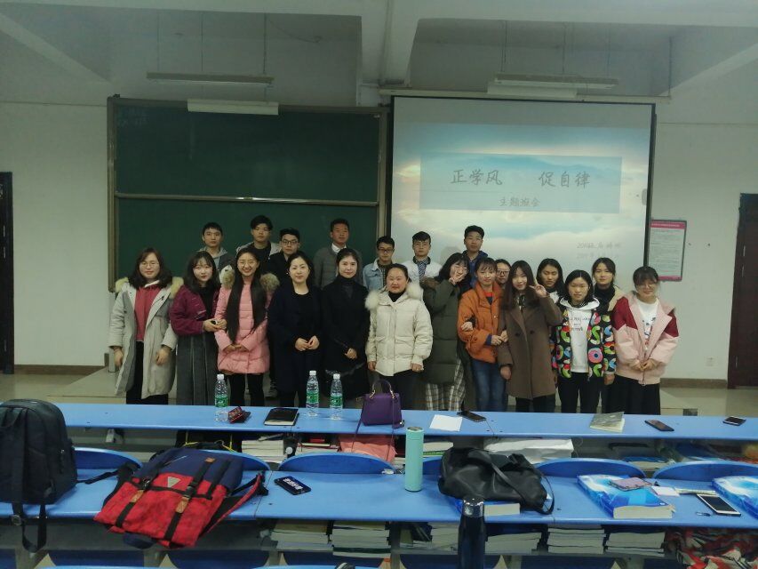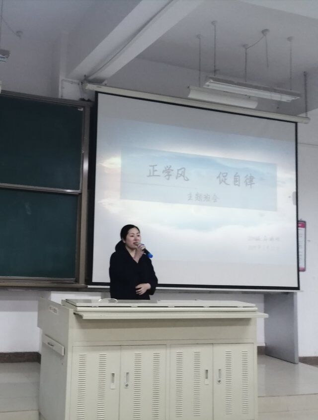 2016级于3月12日在北校区2501教室举行了 “正学风,促自律”主题教育班会。辅导员徐青老师,班主任姚茵老师以及全体同学参与,班会由徐青主持。