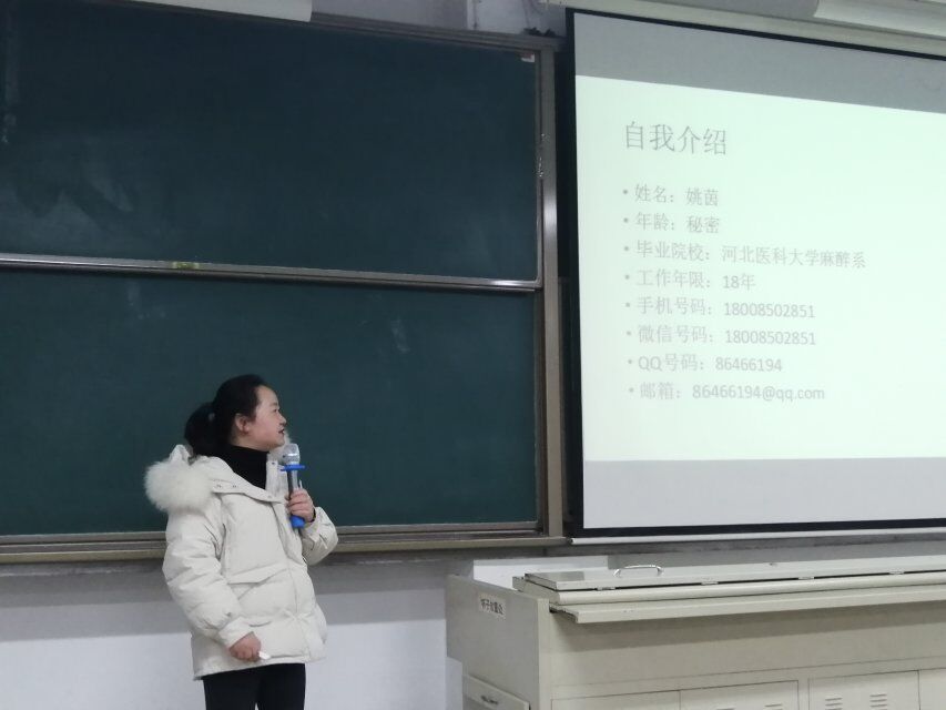 随后,姚茵结合自己多年的临床麻醉学习经历,为同学们详细解答麻醉学是什么、怎么学习麻醉学等问题,以及如何针对本学期多门学习课程分享自己的学习方法。同时,她告诫同学们在麻醉学的理论和实践学习过程中,应该脚踏实地,抓住每一次学习的机会,学会理论指导实践,在实践中不断夯实理论基础。