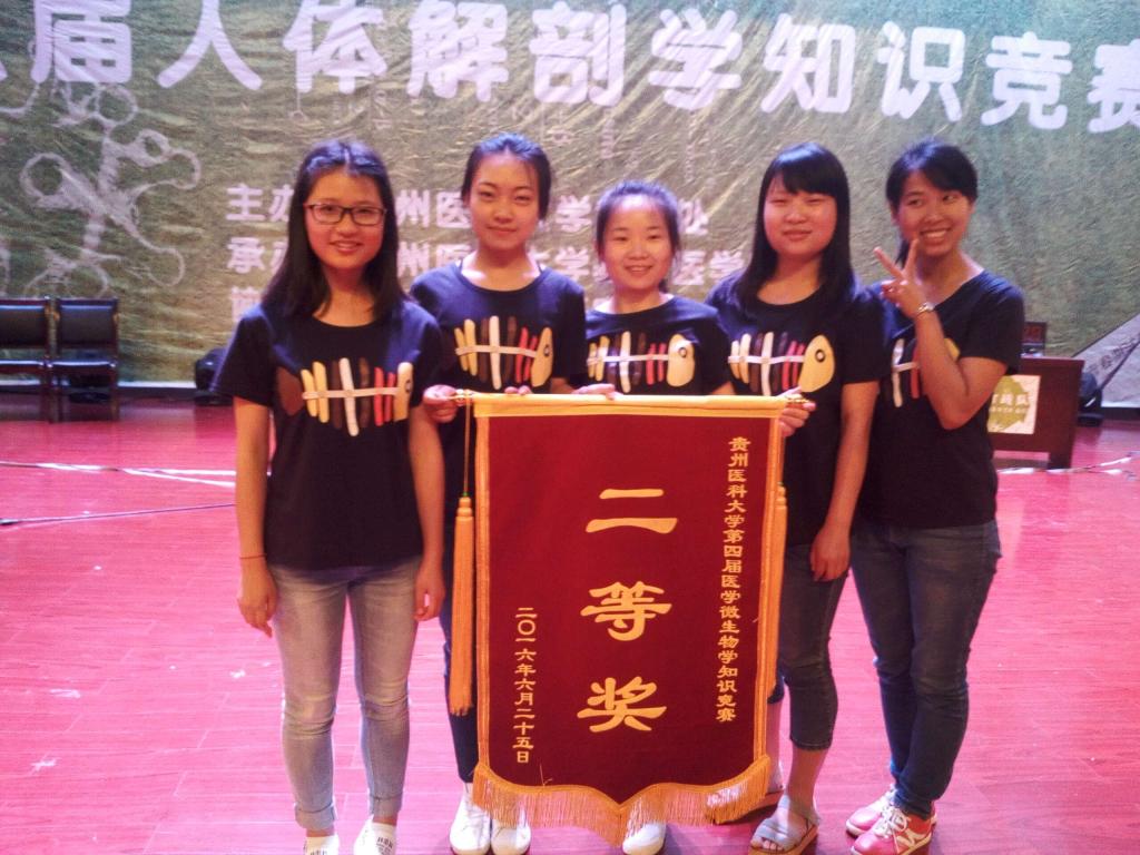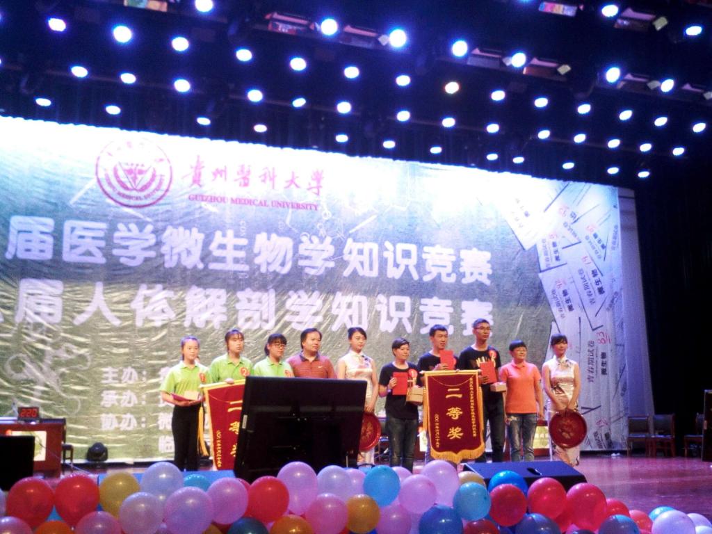 6月25日贵州医科大学第四届医学微生物学知识竞赛在新校区礼堂隆重举办。本次竞赛共有6支队伍,其中6号参赛队,由如意体育 2014级学生李斯特,龙安娜,罗小响,陈彩虹,谢宁倩与基础医RYSPORTS 急救学3名同学组成的wuli赛菌队,比赛中,同学们团结协作,一路过关斩将,丰富的知识储备让在场观众掌声不断,即便是难度系数最高的抢答题,他们也从容不迫,临危不俱,越战越勇,最终获得本次大赛二等奖。