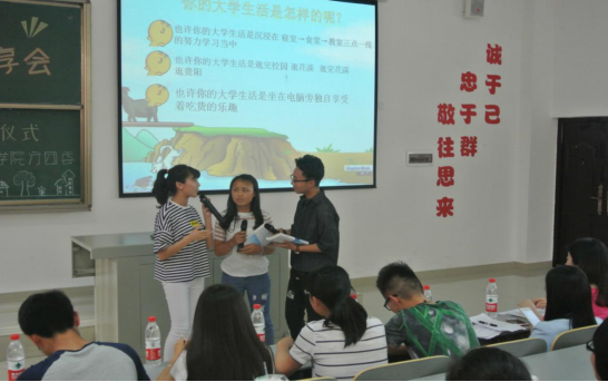 辅导员徐青,周霁以及学生会成员组成;2014、2015级全体同学参加了分享会。