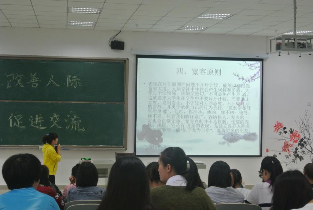 辅导员徐青作班会总结:“大学生应该努力改变局限自我的人际交往的困境,改善人际要勇于突破自我。有效的沟通与交流是自身综合素质的良好展示,大学生应不断提升人际交流的能力,为踏入社会打下良好基础。希望同学们能够珍惜每一个锻炼自己、展示自己的机会,成就自己精彩的人生之路。