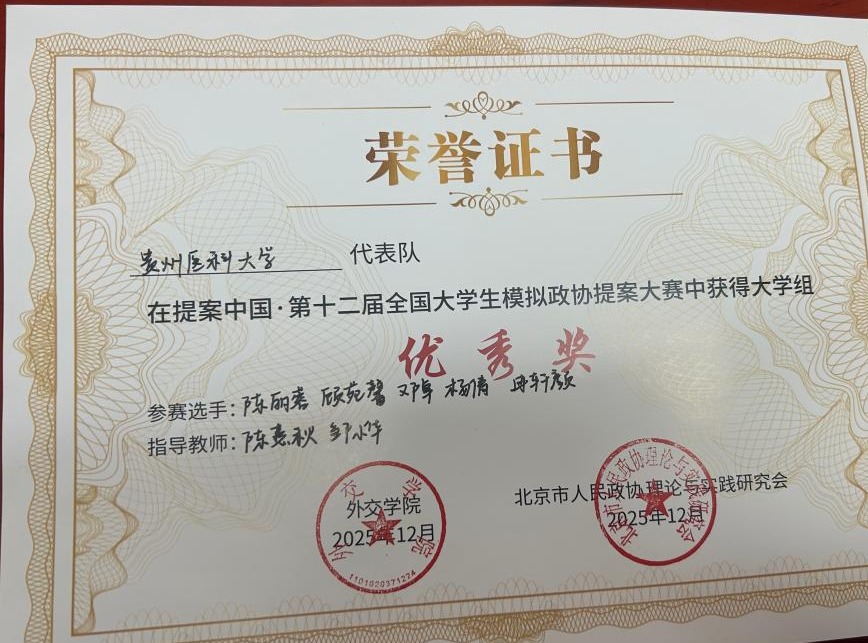 《提案中国第十二届全国大学生模拟政协提案大赛》优秀奖
