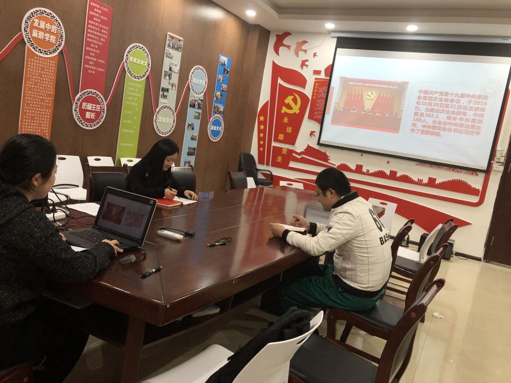 会议室开展支部书记上党课,教工党支部书记徐青为支部成员做了党的十九届四中全会精神专题学习。徐青从十九届四中全会中国共产党第十九届中央委员会第四次全体会议公报内容、中共中央关于坚持和完善中国特色社会主义制度、推进国家治理体系和治理能力现代化若干重大问题的决定说明,以及确定会议确定在100件大事为支部成员作讲解。中国共产党第十九届中央委员会第四次全体会议通过《中国共产党第十九届中央委员会第四次全体会议公报》,内容主要包括中国特色社会主义制度和国家治理体系的“3个判断”、“13个方面的显著优势”,坚持和完善中国特色社会主义制度、推进国家治理体系和治理能力现代化的总体目标、坚持和完善的13个制度体系,强调了1项重大战略任务,公布了2项人事信息。《中共中央关于坚持和完善中国特色社会主义制度、推进国家治理体系和治理能力现代化若干重大问题的决定》起草情况向全会作说明,决定稿起草背景和考虑是从党和国家事业发展的全局和长远出发,中央政治局决定这次中央全会专题研究坚持和完善中国特色社会主义制度、推进国家治理体系和治理能力现代化问题,为我们实现“两个一百年”奋斗目标的重大任务;也是把新时代改革开放推向前进的根本要求。和应对风险挑战、赢得主动的有力保证。坚持和完善党的领导制度体系、人民当家作主制度体系、中国特色社会主义法治体系、中国特色社会主义行政体制、社会主义基本经济制度、统筹城乡的民生保障制度、共建共治共享的社会治理制度、党对人民军队的绝对领导制度、“一国两制”制度体系、坚持和完善独立自主的和平外交政策方面的100件大事做出努力。