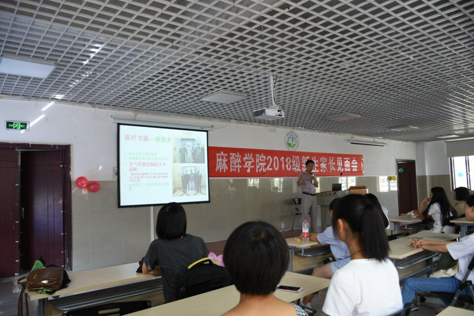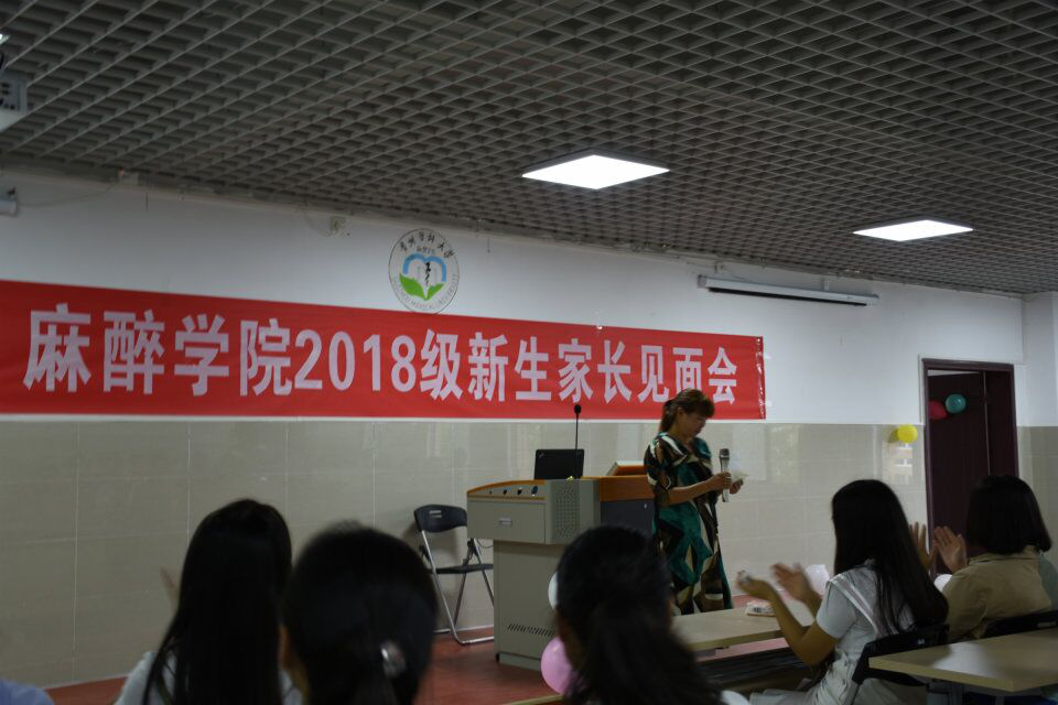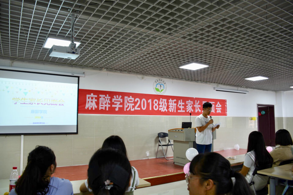 副院长邹小华、副院长曾祥刚、麻醉学专业课教师汪静、姚茵以及2018级辅导员陈燕秋、班主任李文谦,分团委、学生会代表、2018级全体新生和部分新生家长共同参与了见面会。
