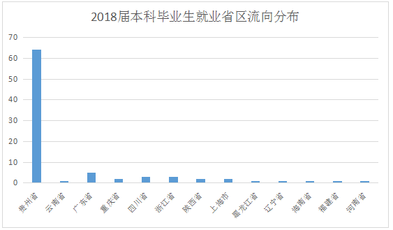 2018届本科毕业生就业省区分布情况为:云南省1人;贵州省64个;广东省5个;重庆省2个;四川省3个;浙江省3个;陕西省2个;上海市2个;黑龙江1个;辽宁省1个;海南省1个;;福建省1个;河南省1个;日本1个。