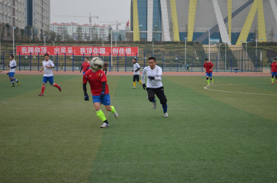 裁判的一声哨响后,比赛拉开序幕。虽值隆冬,寒风凛冽,赛场上的老师却个个热情洋溢、英姿飒爽。一场场紧张激烈、扣人心弦的角逐,不断的在足球场内上演,场外的啦啦队不断地为各自的队友呐喊、鼓舞、喝彩,气氛热烈!精妙的传球、漂亮的配合和精彩的射门,引得现场阵阵欢呼。