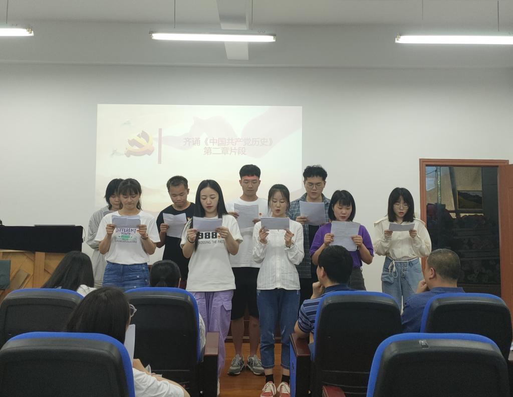 党委在北校区圆厅会议室组织开展“诵读红色经典 传承红色精神 坚定理想信念”主题党日活动。党委书记李宏伟、正处级组织员黄兰、副书记吴彦嫢、副院长曾祥刚以及教工、研究生、本科生三个党支部共计73名师生党员参加。