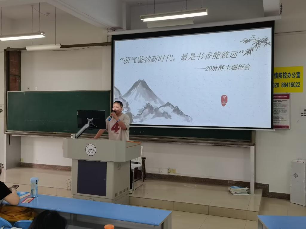20级在北京路校区2601教室开展了“朝气蓬勃新时代,最是书香能致远”主题班会。本次活动由甲乙两班班长骆佳兴、余涛主持,如意体育
