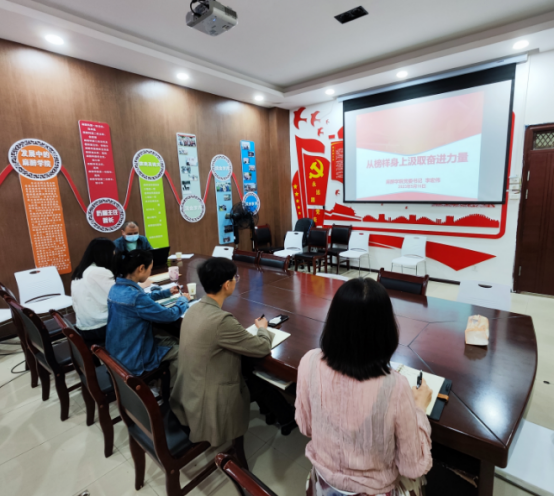 会议室以《从榜样身上汲取奋进力量》为题,为教工党支部全体党员上党课。