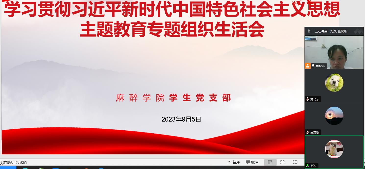 学生党员的精神面貌,对各位同学的成长进步表示欣喜。她鼓励各位党员利用好身边的学习平台和学习资源,坚持理论学习并付诸实践,以实际行动为支部发展做出应有贡献。